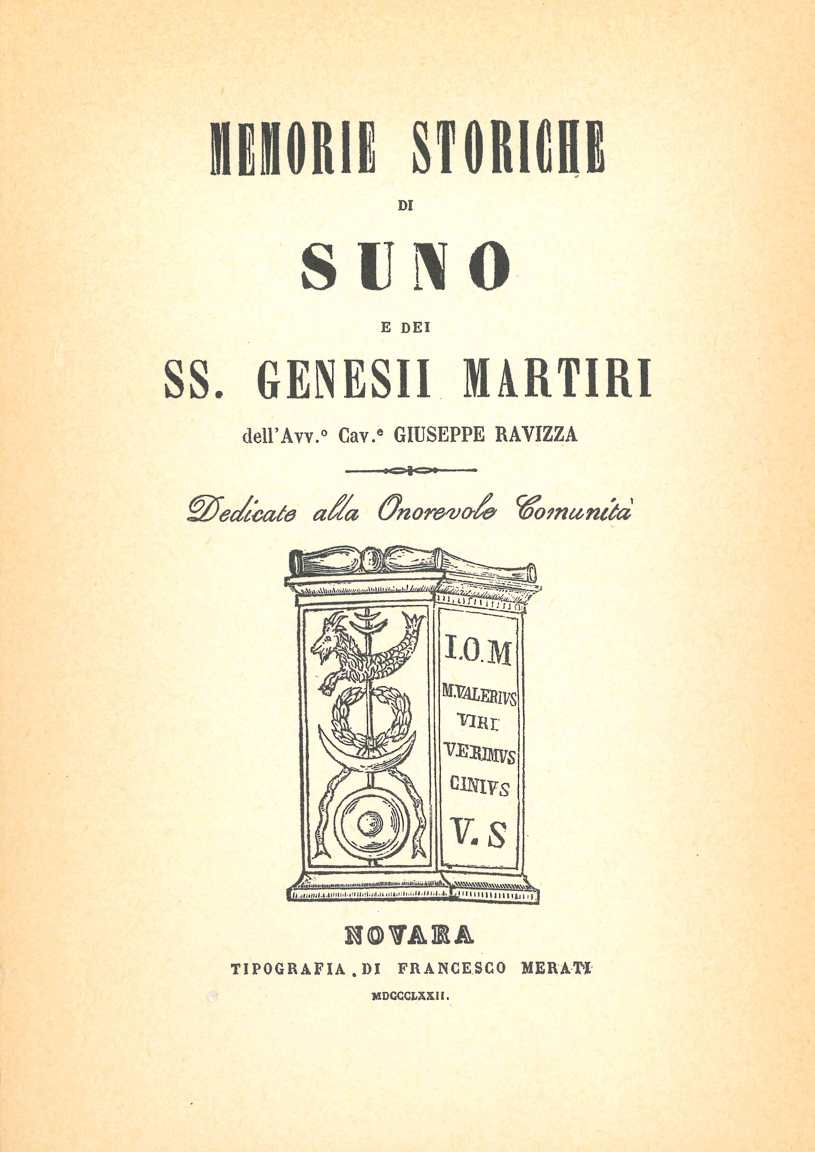 G. Ravizza, Memorie storiche di Suno e dei SS. Genesii martiri, Novara 1872.