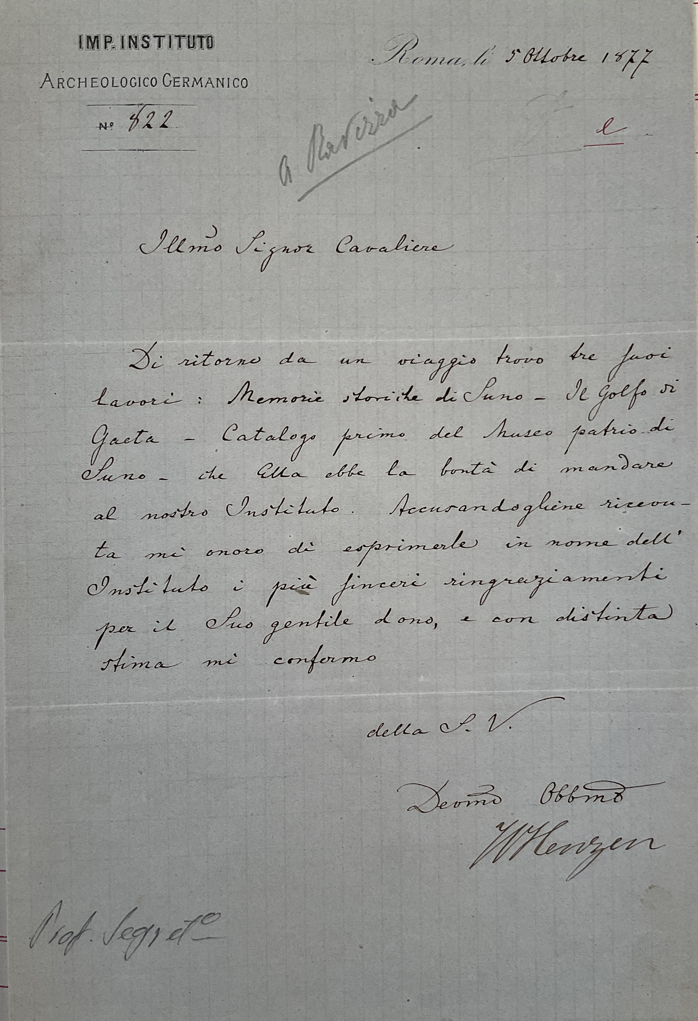 Lettere di Theodor Mommsen agli Italiani, a cura di M. Buonocore, II, Città del Vaticano 2017, pp.  613 nr. 251, 690 nr. 337; 696 nr. 343, 705 nr. 355, 709 nr. 358.
